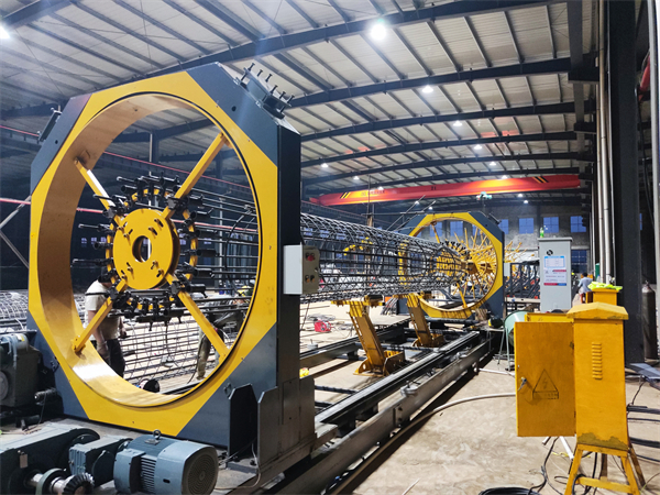 钢筋笼滚焊机,具备加工速度快,工作效率高的特点,加工出的钢筋笼质量稳定可靠,可以实主筋、缠绕筋的间距均匀,钢筋笼直径一致,产品质量完全达到规范要求。